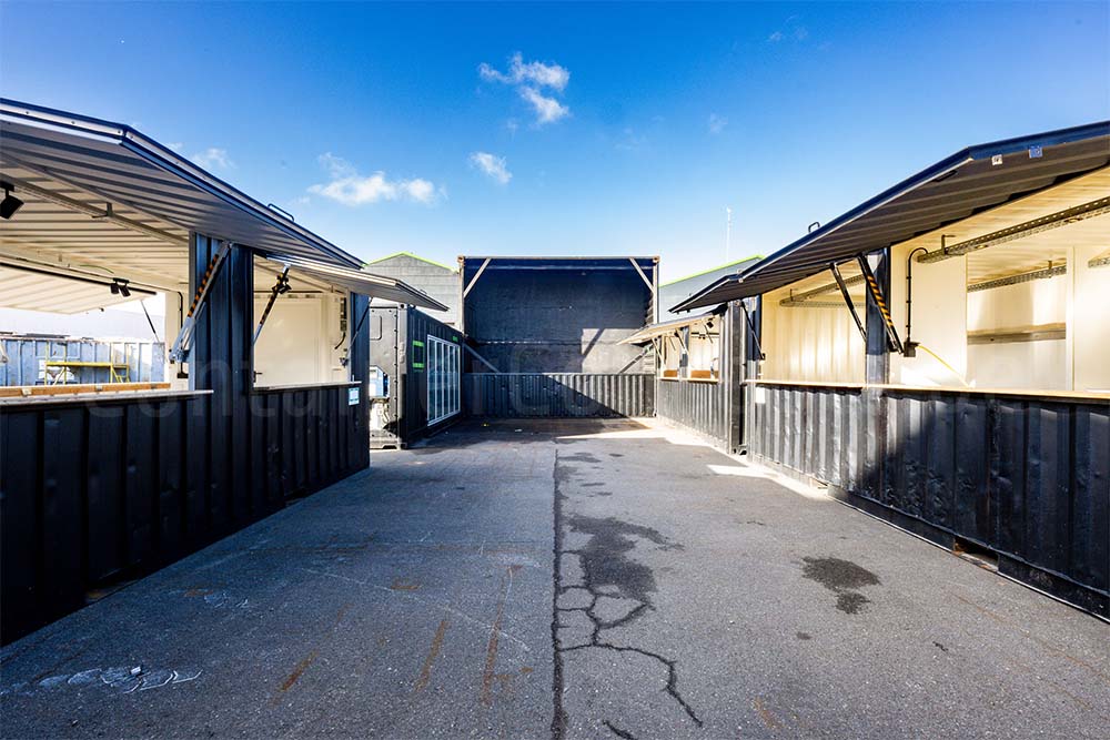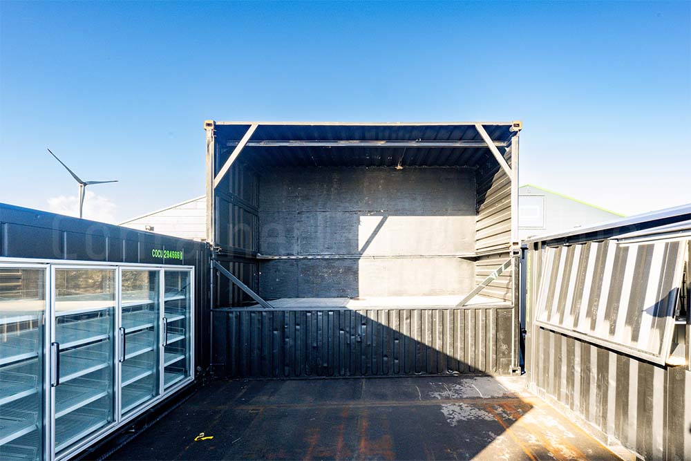 Cette scène container unique est composée de deux conteneurs maritimes de 20 ft empilés latéralement et solidement reliés via les coins de fixation. Grâce à des aménagements ingénieux, une scène remarquable et fonctionnelle a été créée, parfaitement adaptée pour des événements, spectacles et festivals.